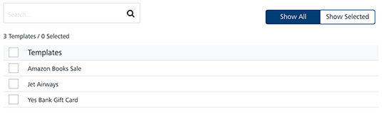Show Selected: The Show Selected tab displays the selected pass templates in the list-view. Select the check-box next to the Templates header to select all the pass templates.