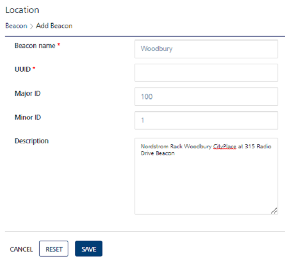 - Beacon Name: Lisa needs to enter the beacon name in the Beacon Name field such as Woodbury.