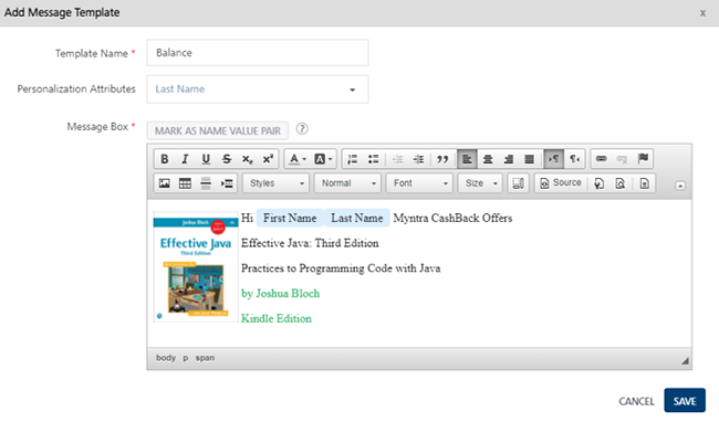 For more details about how to define campaign message refer, Defining Campaign Messages