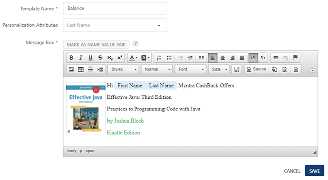 To know more about Templates, refer Adding Templates (push, SMS, email and pass)