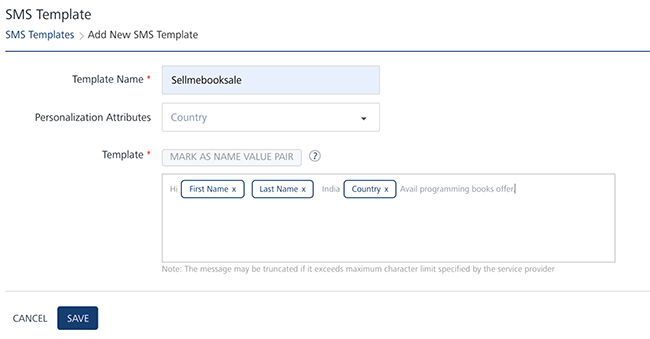 For more details about how to add SMS message templates refer, Adding SMS Template