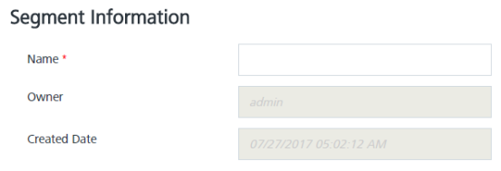 - Name (mandatory): Enter a name for the segment that you want to define. Your segment name should include alphanumeric characters only. The Name is a mandatory field.