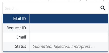 Status: Enter the status in the Search field such as, Submitted, Rejected or In-progress.