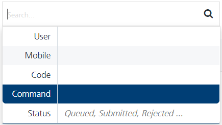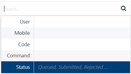 Search field: Click in the Search field to view options to search an inbound SMS. You can search inbound SMS based on the following criteria: