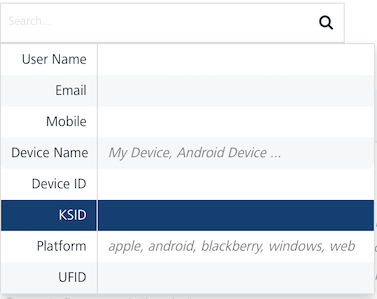 - KSID: Enter the Volt MX Subscription Identification Serial Number (KSID) in the Search field and click Enter.