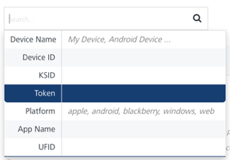 - Search: Click in the Search field to view the available options to search a device. You can search devices based on the following search criteria: