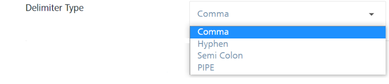 Delimiter Type: Select the type of delimiter from the Delimiter Type drop-down list, such as comma (,), hyphen (-), semicolon (;) or PIPE. By default, the Delimiter Type drop-down list is set to Comma.