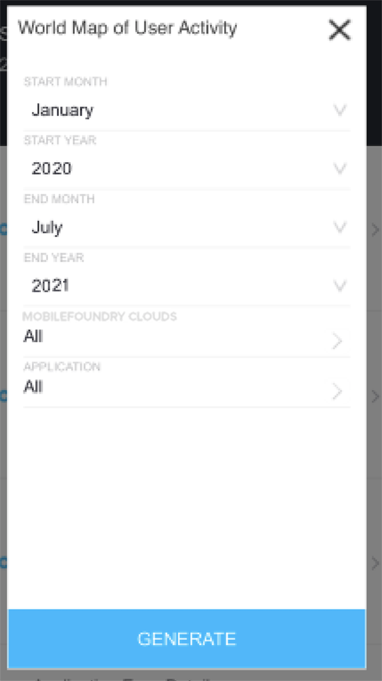 The Analytics mobile app provides all of the custom reports that are available on the Volt MX Foundry account. For information about capturing custom metrics from an application and building reports, see Custom Metrics and Reports Guide.