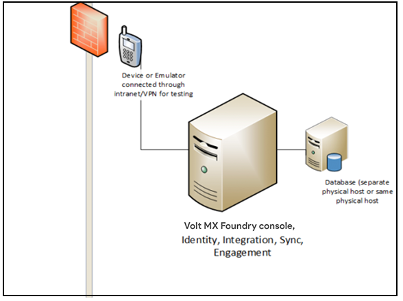 Volt MX Foundry is an enterprise-grade mobile backend as a service (MBaaS). How you set up Volt MX Foundry depends your application requirements and the number of users of your applications. You can set up Volt MX Foundry on-prem in many configurations with component servers that are configured on single or multiple physical and virtual hosts.