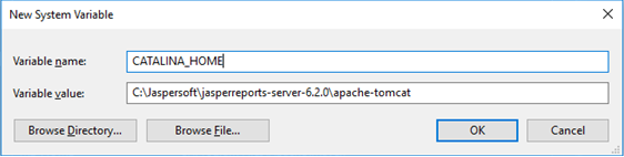 Set "CATALINA_HOME=C:\Jaspersoft\jasperreports-server-6.2.0\apache-tomcat"