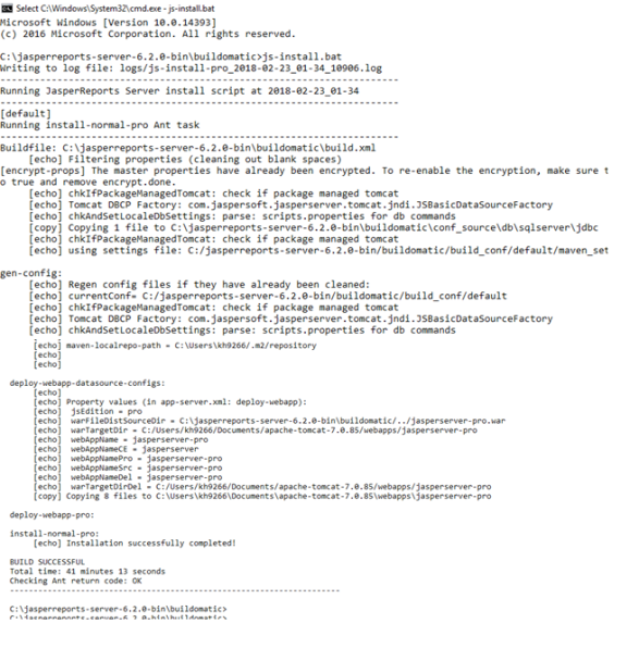 Buildfile: C:\Users\kh9266\Documents\jasperreports-server-6.2.0-bin\buildomatic\build.xml [echo] Filtering properties (cleaning out blank spaces)