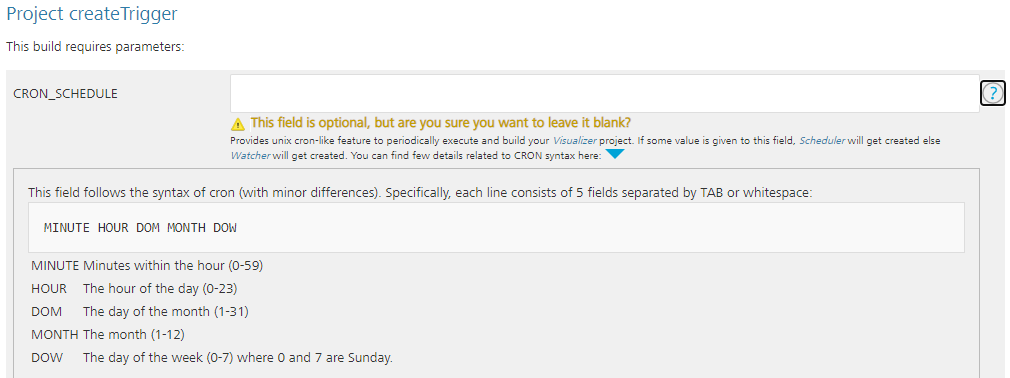 - For the CRON_SCHEDULE parameter, make sure that the field is blank.