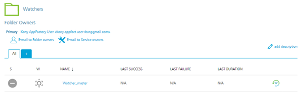 Jobs that are triggered by a push to the SCM are stored in the watchers folder. Every Watcher has a branch name in the name of Job to simplify job search.