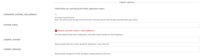 • COMMIT_AUTHOR - Provide the author for commit. App Factory value is set by default.