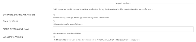 • ENABLE_PUBLISH - Select the check box to publish the application after successful import.