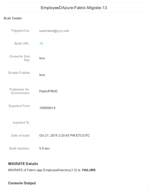 On unsuccessful migrate, designated user receives an email alert with failure details.