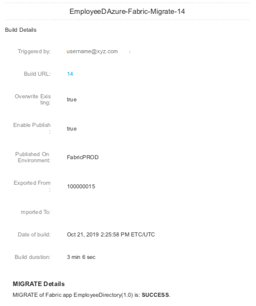 On successful migrate, the designated user receives an email alert with success details.
