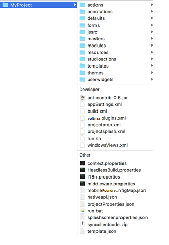 If you check-in your entire project to a directory in your SCM, the root of the project is the project name. The following screenshot shows an app and the contents of the project in the SCM. The name of the app in this case is MyProject.