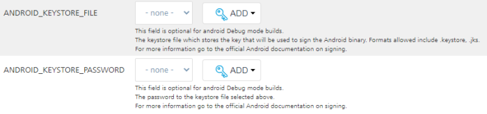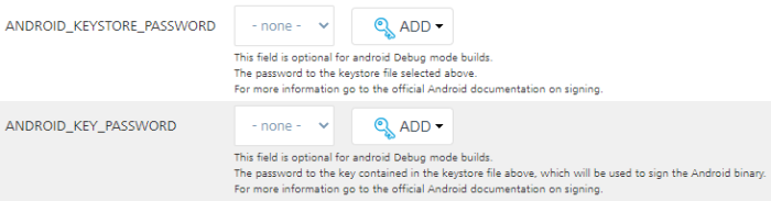 Important: Make sure that you add Android_Keystore password credentials for every Android_Keystore file.