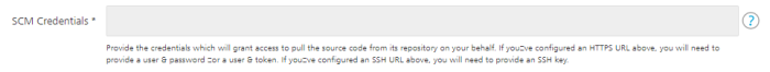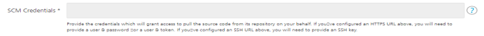 If the source code URL for your project is an SSH URL, you need to add the SSH key credentials that act as the source code repository credentials for the project.