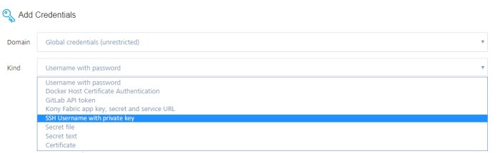 In the Add Credentials window, from the Kind list, select SSH Username with private key.