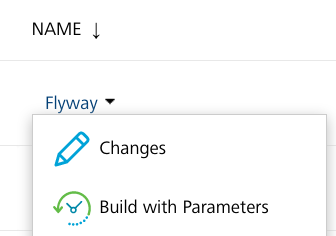 • Open the drop-down list (context-menu) for the Flyway job, and then select Build with Parameters