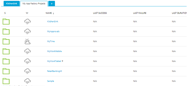 After the job execution is complete, the project is created and can be viewed on the landing page of App Factory.