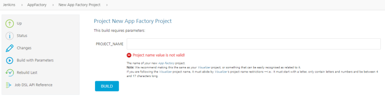 Click New App Factory Project link in the left panel. The New App Factory Project page appears.