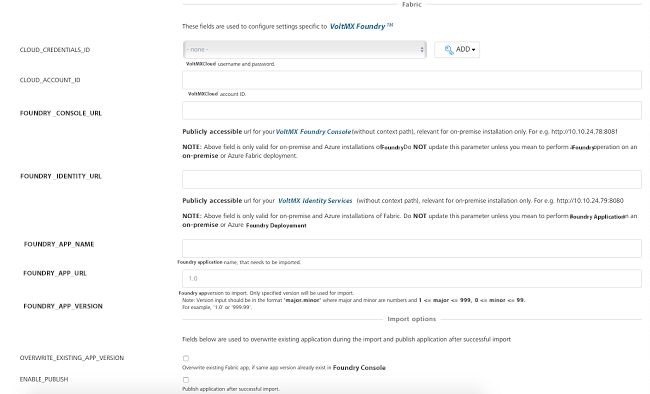 Foundry Cloud Details For Import- Used to configure the settings specific to Volt MX Foundry Import.