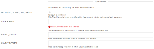 COMMIT_AUTHOR - Provide the author for commit. App Factory value is set by default.
