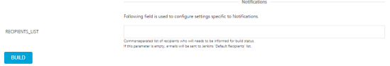 - RECIPIENTS_LIST - Enter the email addresses separated by a comma to notify people about the build status. If this parameter is empty, emails will be sent to the Jenkins Default Recipients list.