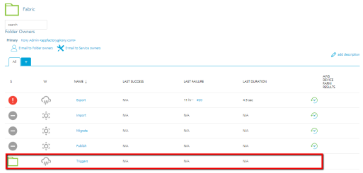 Navigate to App Factory Project >>Foundry>> Triggers.. The Triggers page appears.