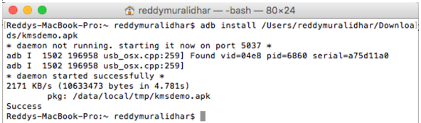 After the binary has been downloaded on to your machine, connect the device to the computer and run the adb command to install the binary.