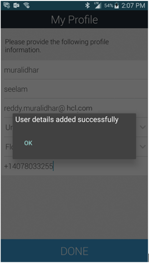 You will see the following screen once the user has been created successfully. Click Ok and Done again to navigate to the next screen of the application.