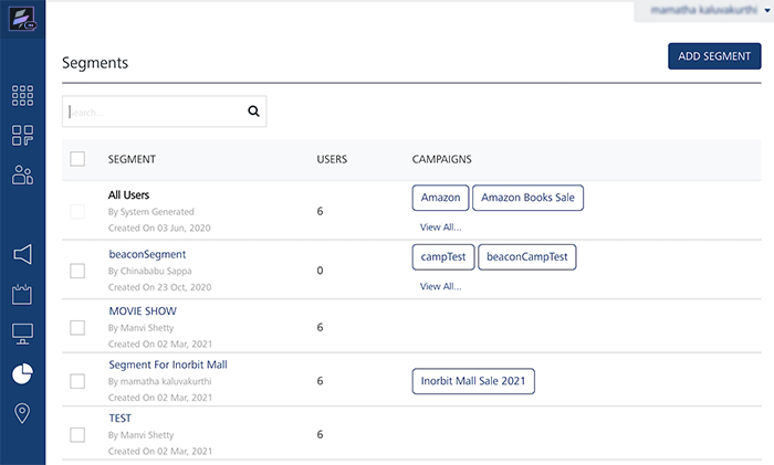Next, we will set up a campaign that will use this segment. To set up a campaign, click Campaigns under the Engagement section.