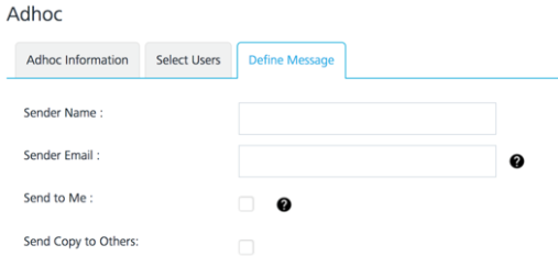 In the Define Message section below, the Sender Name, Sender Email, Send to Me, and Send Copy to others options can be ignored.