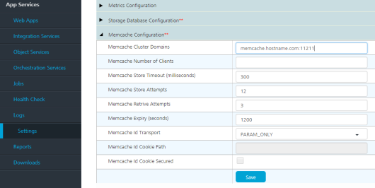 - In the Memcache Cluster field, provide your memcache hostname/IP and port details separated with a colon. For example,