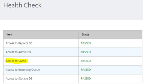 **Verification:** To verify whether the memcache configuration is successfully done, go to the **Health Check** page and look for **Access to Cache** entry.