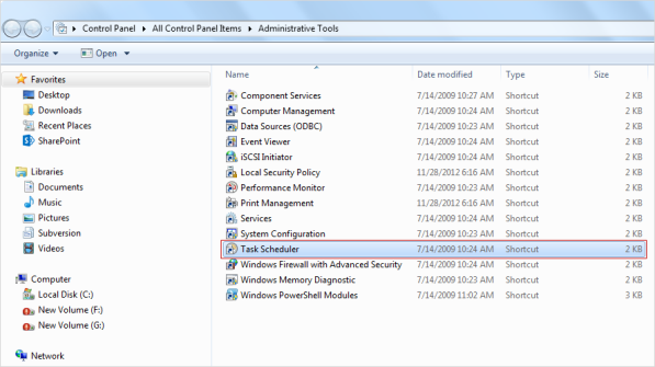 Open Task Scheduler from Start > Control Panel > Administrative Tools > Task Scheduler.