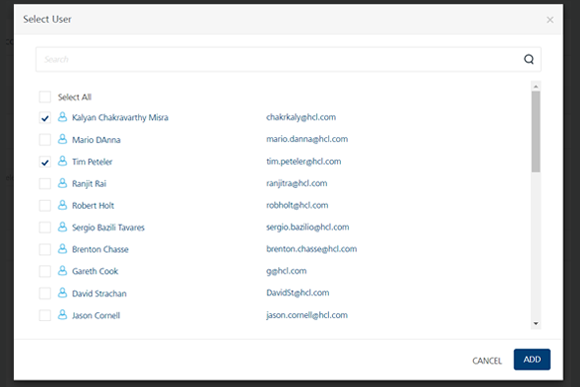 The Select User windows appears. All the owners and admins might not be shown in the list of Specific Access users.
