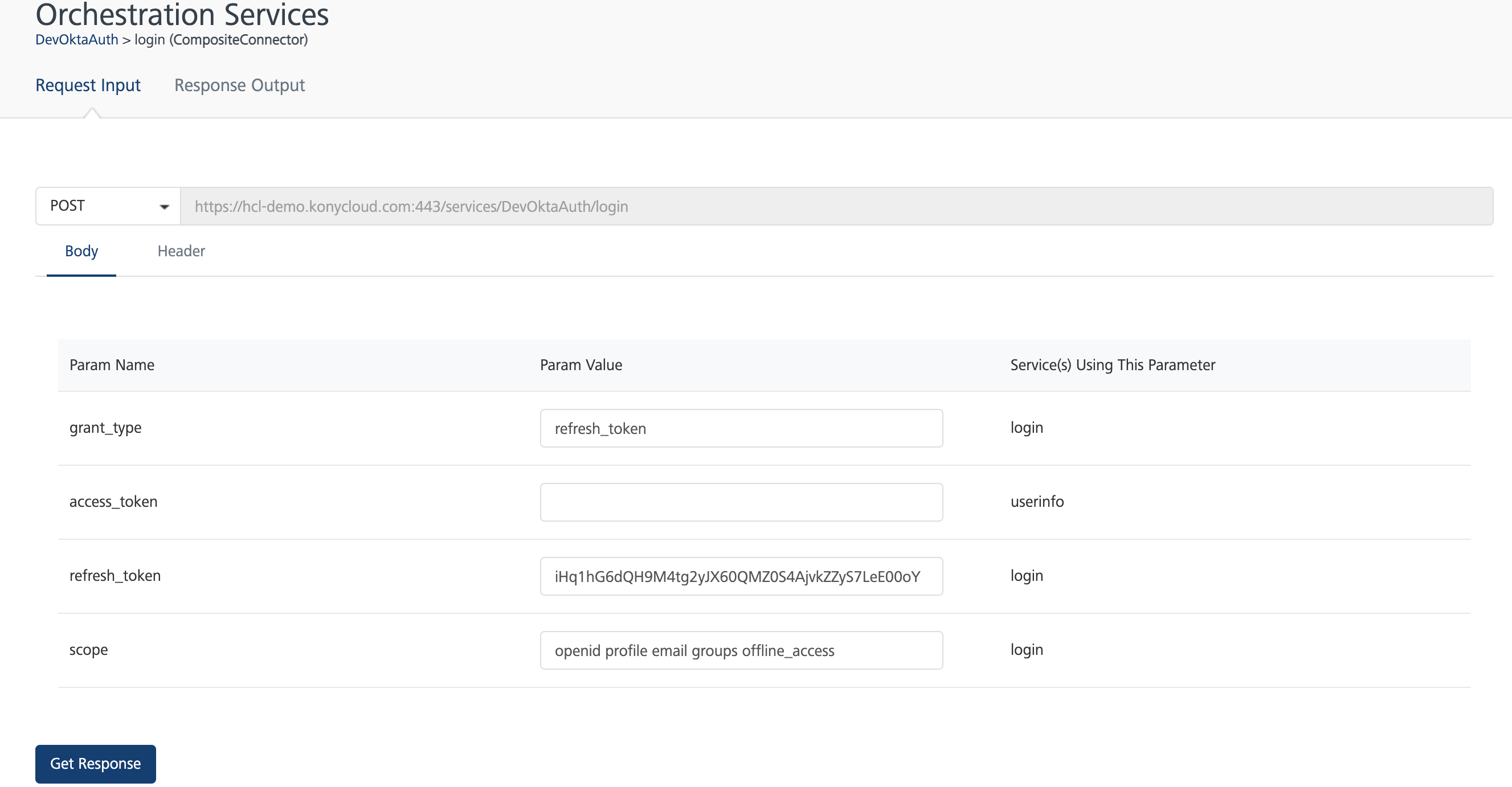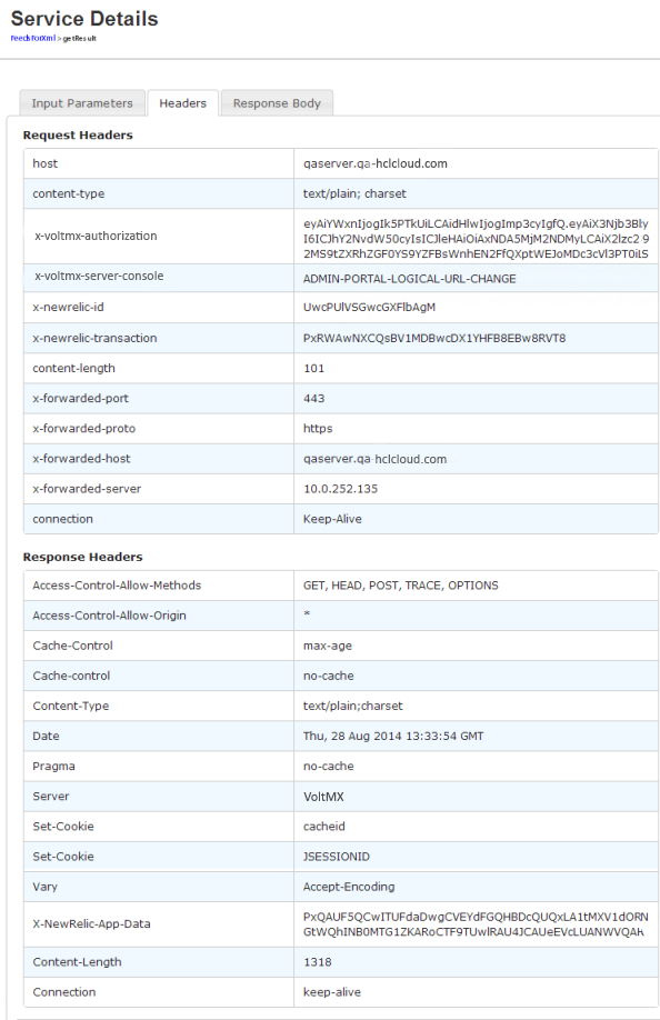 - List of Integration services and Orchestration services defined across your Volt MX Foundry environment.