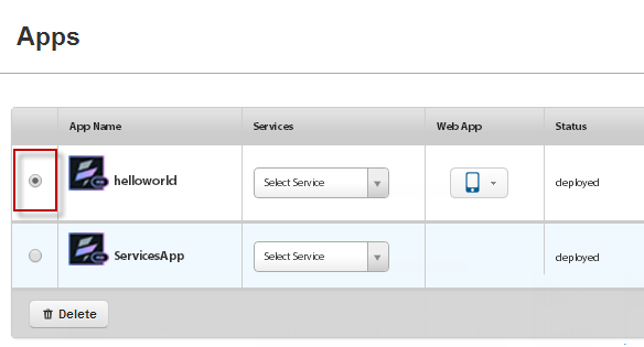 - List of Volt MX Studio applications in your Volt MX cloud environment.