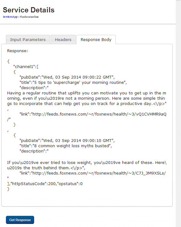 In the Orchestration page, click the corresponding URL of the operation to open the Service Details page.