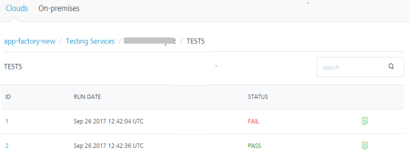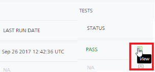 The TESTS page displays a list of test results for a project/app. For viewing the details, you can click View button.