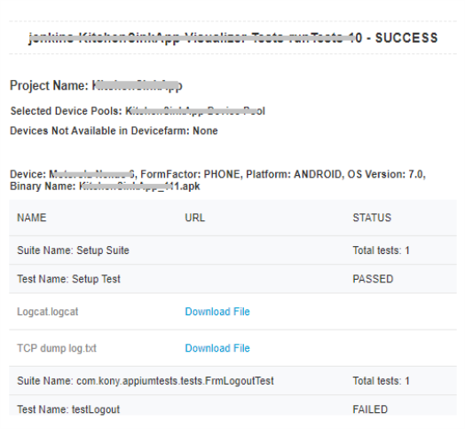 To view the test results of an app, click View in the TESTS screen. The following screen appears with sample details: