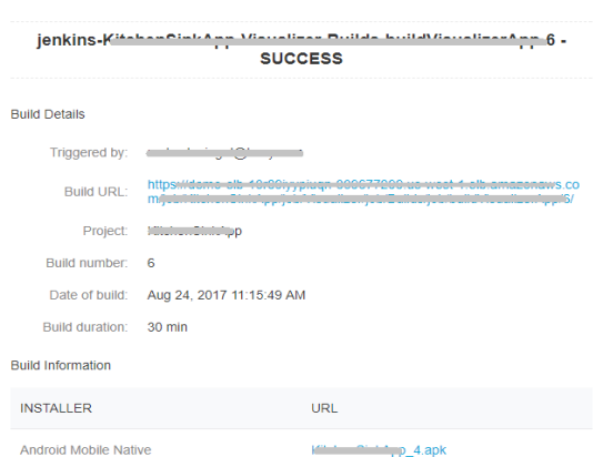 To view the results of a build or app, click View in the BUILDs screen. The following screen appears with sample details: