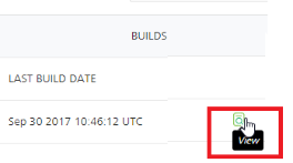 The BUILDS page displays a list of builds triggered and build status for selected channels in a project. For viewing the details, you can click the View button.