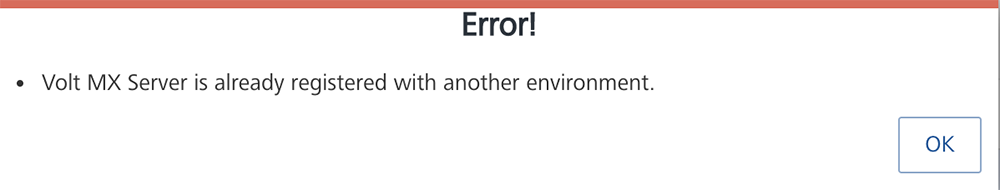 If a server is already configured with an environment and you try to add the same server to another environment, the system will throw an error, shown below: