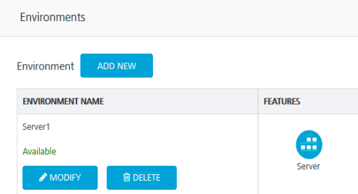 Click SAVE to apply the environment capabilities. The environment is created in the Environments page.