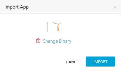 - In the Import App dialog, the selected file is added under Import Options > App Name. To change the selected file, click Change Binary, select the app file you want, and click Open.